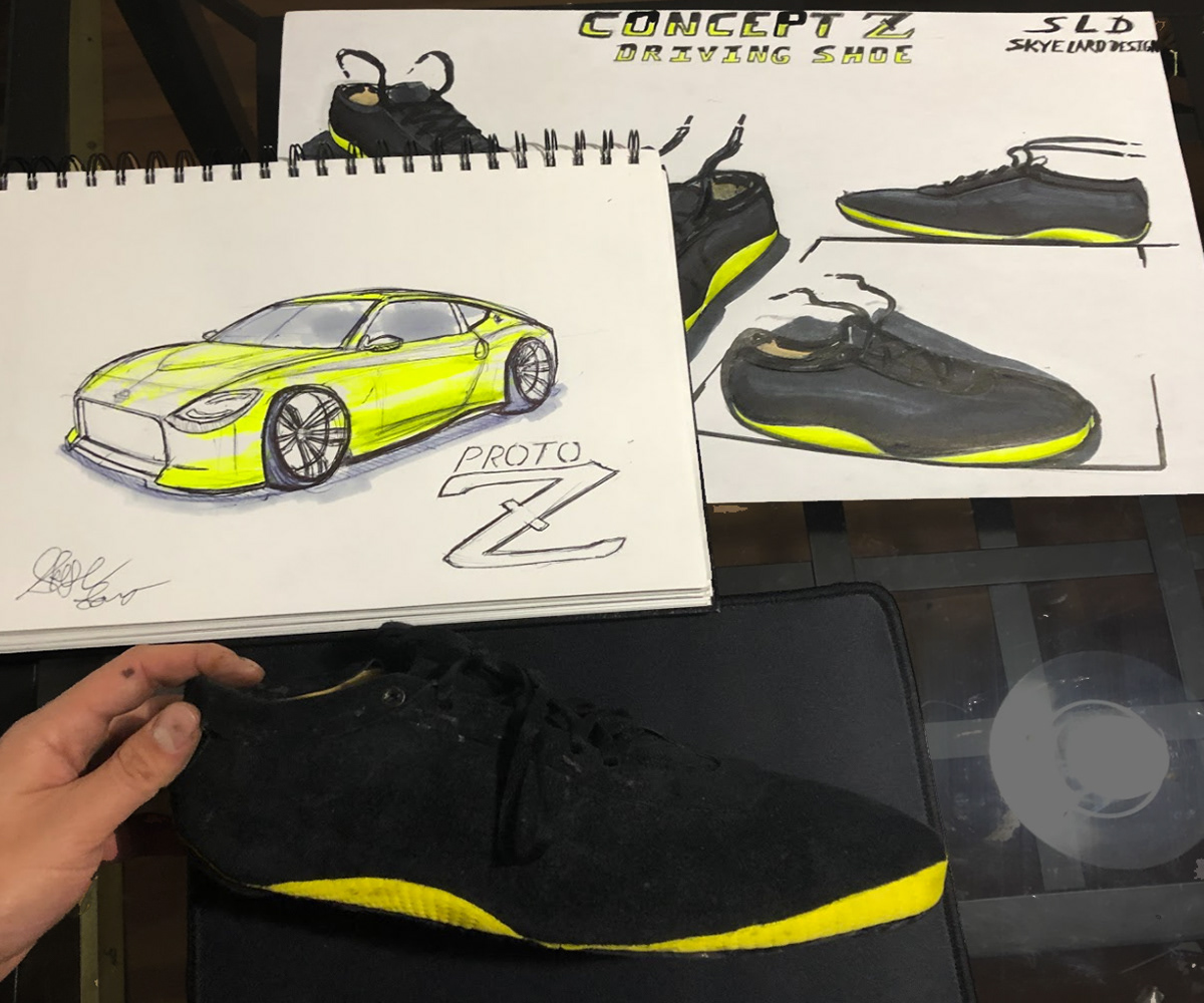 Fire proof driving shoe, hand made with organic materials. Design inspired off the 2023 Nissan z.